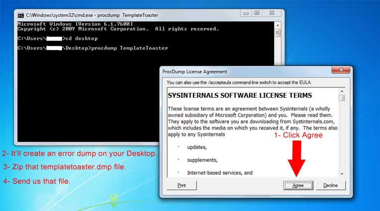5. ProcDump will save a TemplateToaster.dmp file on desktop