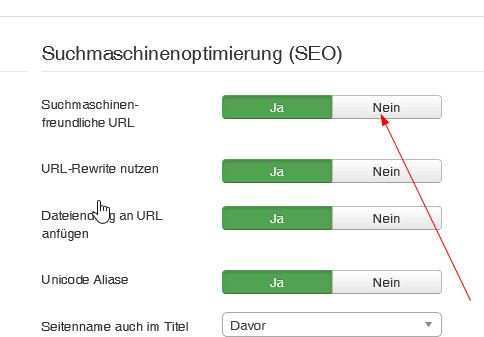 When i have activated in the backend from Joomla the "searchfriendly URL's", no Site is working, when i click on the Menupoint (see on