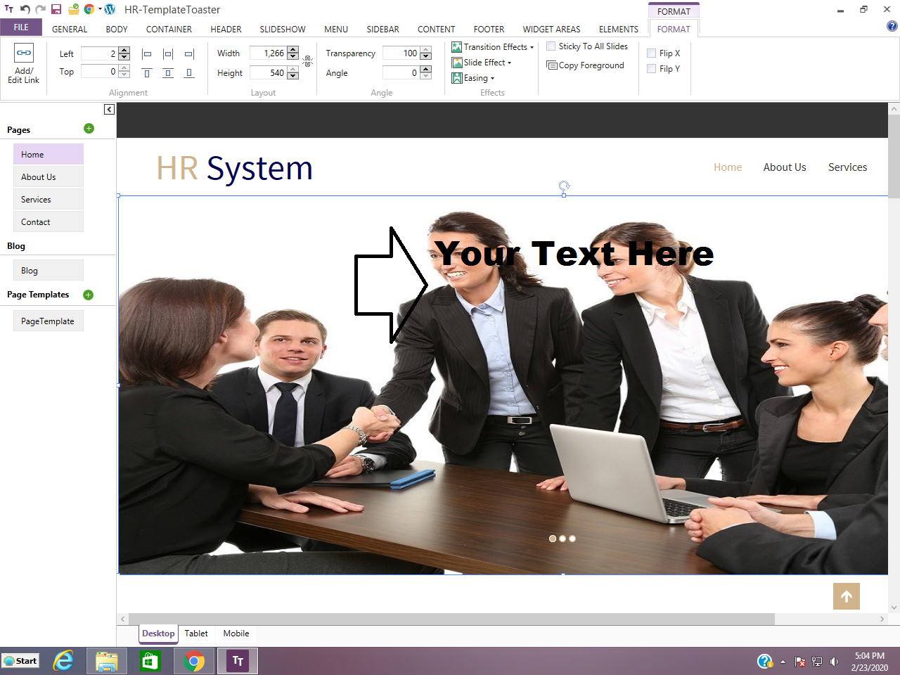 Dear support, i am designing a Human Resource Software theme using template toaster.I want to add some text on the images that are present in slide show. Kindly help me.https://templatetoaster.com/forum/?qa=blob&qa_blobid=15787679886591193113