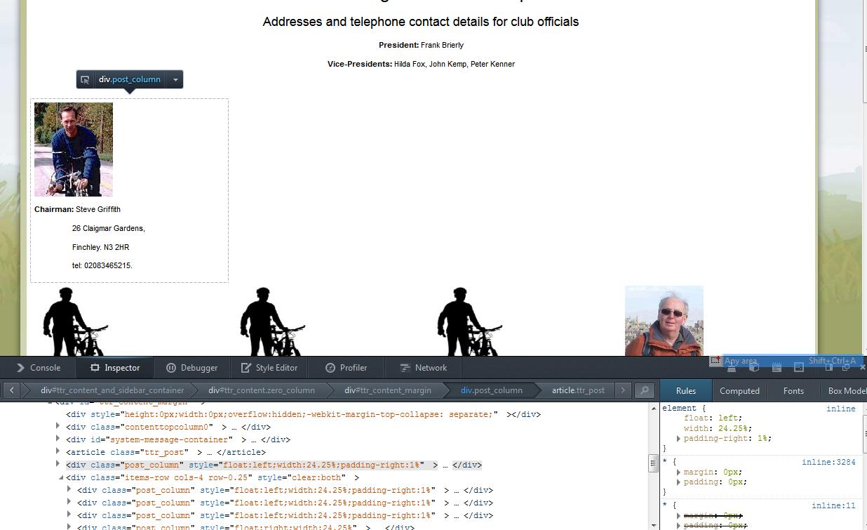First intro article gets outside the div containing all the other intro's which display correctly so takes up a whole line on its own.